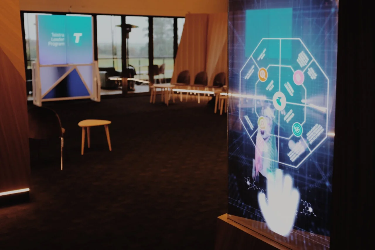 Working with digital agency 'Loud & Clear', ONset designed and constructed a modular conference centre that can be bumped in and bumped out of a function centre in the matter of hours. The installation also includes dynamic LED lighting, banked LCD screens and two state of the art transparent interactive OLED screens, all encapsulated beautifully in the plantation oak veneered modules.